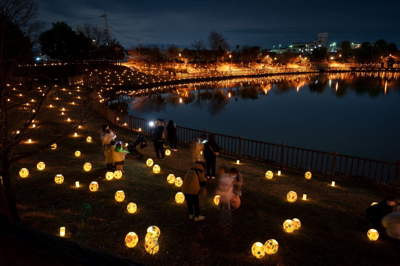 冬空の下、ロウソクの灯りと心地よい音楽に包まれる、香芝の恒例行事。竹灯籠やキャンドルが並び、ワークショップや県内の“うまいもん”が集まる屋台なども楽しめる。