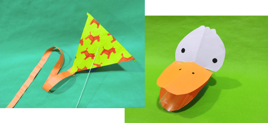橿原市立こども科学館で楽しめる無料の工作教室。毎月テーマが変わり、1月は風あそびの「カラフルミニ凧」、2月は音あそびの「ガーガーあひる」の工作にチャレンジ!