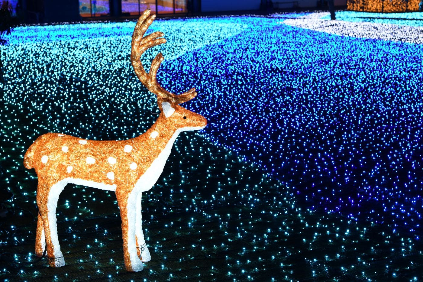 春日大社・興福寺・東大寺の夜間特別拝観を中心に、奈良公園一帯が瑠璃色の光でつながる幻想的な演出。奈良公園にきらめく色鮮やかな瑠璃色の情景を目に焼き付けよう。