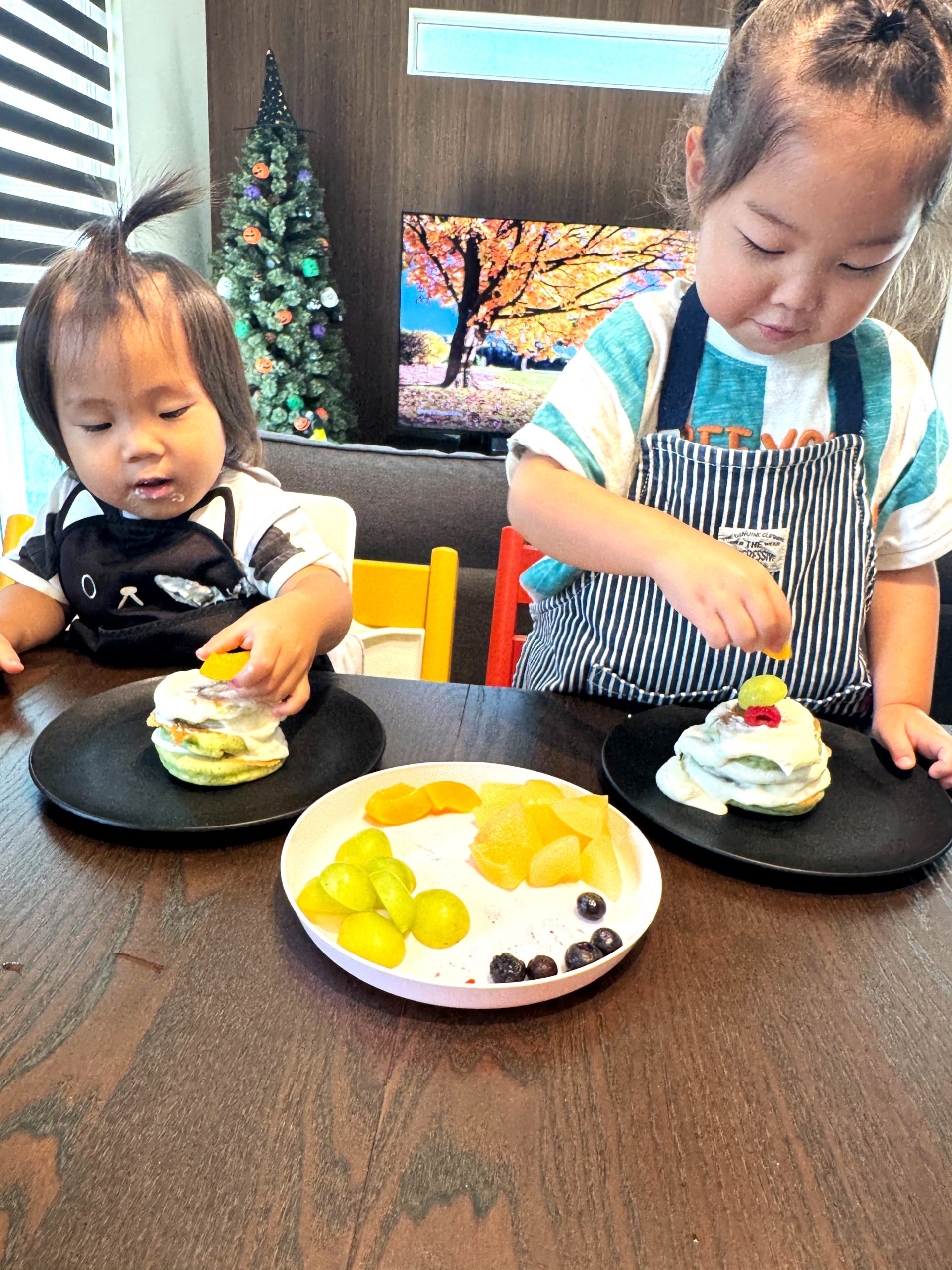 6. パンケーキをクリームや好みのフルーツで飾る。