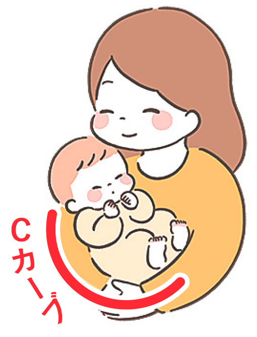 赤ちゃんの背骨はCカーブと言ってカーブを描いているので、カーブに合わせた抱き方(丸抱き)をおすすめします。